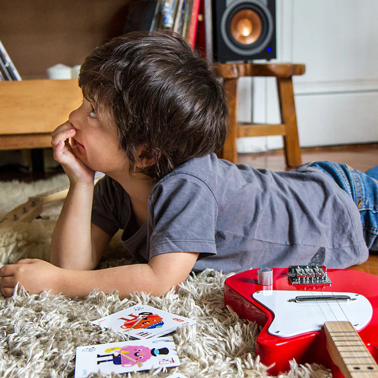 Ofrecemos lo que nosotros (y otros) creemos que es la mejor guitarra para niños. Pero es cierto que hay muchas otras opciones, algunas de ellas mucho más económicas que una Loog. ¿Entonces, por qué Loog? La mayoría de las guitarras para niños son simplemente guitarras pequeñas y baratas. Y debido a que de todos modos tienen seis cuerdas, el mástil es aún demasiado ancho para que un niño pueda tocar cómodamente, y mucho menos fácilmente. Además, las guitarras baratas suelen estar hechas con poca calidad. Tiene sentido evitar gastar una fortuna en un instrumento para principiantes, pero al elegir algo de muy mala calidad, es probable que tu hijo no se sienta lo suficientemente interesado para tocar.