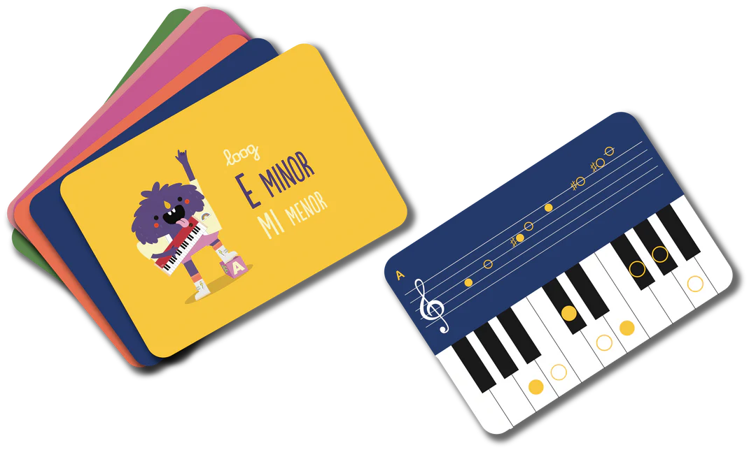 El Loog Piano viene con un set de tarjetas didácticas, para que también puedas aprender acordes y escalas sin necesidad de una pantalla.
